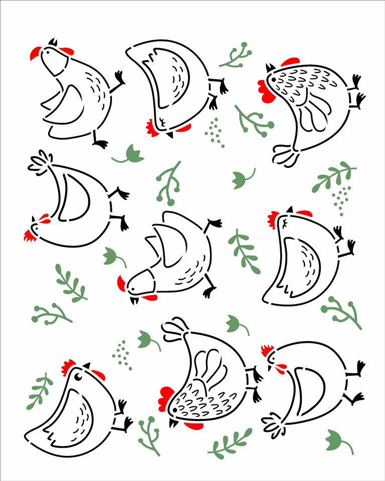Stencil OPA 3569 – Estamparia Galinhas – 20 x 25cm